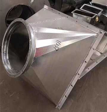 連接圓管與方管的管件。管件一側為圓形,可以連接圓形風管,一側為方形,可以連接方形風管。制作比一般管件復雜,要有經驗的師傅放樣的。